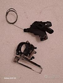deragliatore ( cambio) anteriore microshift 3 velocità e manettino ( comando , pulsante ) Sram , perfettamente funzionanti, smontati da una mtb rockrider st 520 perr trasformazione a monocorona.