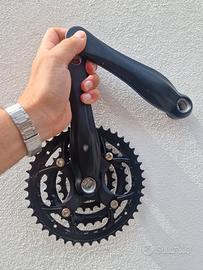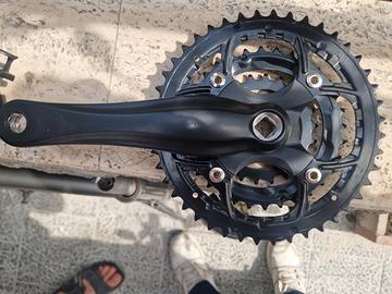 Vendo in blocco deragliatore anteriore Shimano Tourney a 8 velocità e guarnitura tripla 42-32-22. Entrambi i componenti sono nuovi e mai usati. Ideali per una bici da corsa o trekking.