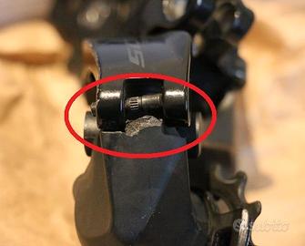 Causa accidentale danneggiamento durante un test di setup sul banco di lavoro, dispongo di deragliatore posteriore Shimano 105 12v meccanico, usato.