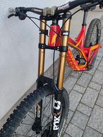 Vendo bici da downhill Devinci ruote full 27,5" (650B) con i seguenti componenti: - telaio Wilson taglia L completamente in carbonio e verniciatura in memoria al grande Steve Smith - forcella Fox 40 - ammo RockShox Vivid molla in titanio - gruppo cambio/freni Shimano Saint - ruote DT Swiss FR1950 - reggisella SDG carbonio - Sella Errant - manubrio Renthal Fatbar diam. 35mm carbonio insieme alla bici do il carro posteriore uguale come in foto e set completo di calotte.