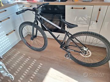 Dirt bike per Pump track , wheelie , Mafia bike blackjack, ruote 26, forcella rigida e forcella RS 100mm escursione,freno a disco post, telaio acciaio, piccola bozza sotto il telaio. Dispongo anche del freno ant con disco e la forcella che verrà dato incluso con la bici, la sella che vedete montata sulla bici verrà sostituita con una delle 3 che vede nell ultima foto collage a vostra scelta