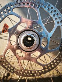 2 dischi freni Shimano da 16 cm. vendo con cerchio perché non ho la chiave per smontarli 10€ entrambi
