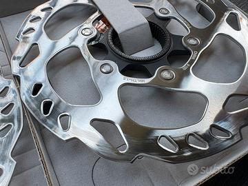Vendo coppia di dischi freno Shimano SM-RT70 (serie 105) con diametro 160 mm e attacco Center Lock. Smontati da bici nuova dopo soli 30 km di prova per upgrade a serie superiore. Le piste frenanti sono perfette, senza alcun segno di usura o rigatura. Specifiche tecniche: Modello: SM-RT70 (Ice-Technologies) Diametro: 160 mm (anteriore e posteriore) Fissaggio: Center Lock Compatibilità: Pastiglie in resina e metalliche Stato: Usato solo per test (30 km), completi di ghiere di chiusura. Prezzo: 40 € (per la coppia) Disponibile anche guarnitura e cassetta 105 12v per chi volesse il pacchetto completo. Disponibile per ritiro a mano a Segrate o spedizione.