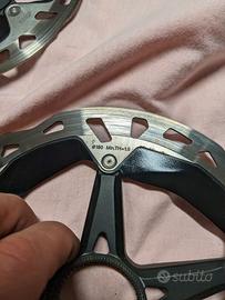 dischi freno shimano xtr, usati 3 volte, perfetti diametro 180 e 160, attacco center lock vendo solo per passaggio a ruote con mozzi 6 fori