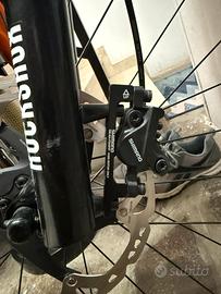 Shimano Deore XT SMRT86L2, da 203mm 6 fori, disco anteriore e posteriore con si e no 20 km (praticamente solo rodati) in piu con i dischi vendo adattatori x2 anteriori shimano sm-ma f203 p/p e uno posteriore shimano sm-ma-f203 p/s.