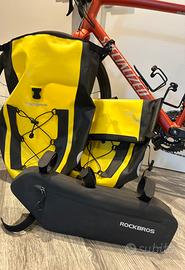 Vendo splendida Gravel SPECIALIZED Diverge E5 Elite in PERFETTE CONDIZIONI tg 58 2021 causa inutilizzo, usata pochissimo + portapacchi + 2 borse rockbros gialle e 1 centrale nera + pedali dentellati antiscivolo Il tutto in perfette condizioni, cura maniacale! Appena revisionata da biciclettaio Prezzo leggermente trattabile Prezzo d’acquisto della bicicletta in negozio: € 1.899 Alcune specifiche: TRASMISSIONE Comandi cambio: Shimano GRX RX400 hydraulic brake levers, 2x10 speed mechanical shifting Deragliatore anteriore : Shimano GRX RX400, braze-on Cambio posteriore : Shimano GRX RX400, 10-speed Pacco Pignoni : Shimano CS-HG50-10, 10-Speed 11-36t Catena : KMC X10, 10-speed w/ reusable Missing Link™ Guarnitura : Shimano GRX RX600 Ingranaggi : 46/30T Movimento Centrale : Shimano 68mm threaded TELAIO Specialized Diverge E5 Premium Aluminum, threaded BB, internal routing, 12x142mm thru-axle, flat-mount disc PNEUMATICI Pneumatico anteriore Specialized RoadSport, Flak Jacket protection, 700x35mm Pneumatico posteriore Specialized RoadSport, Flak Jacket protection, 700x35mm SOSPENSIONI Forcella FACT carbon, full carbon steerer, 12x100 mm thru-axle, flat-moun ⚠️ ATTENZIONE - un paio di regole imprescindibili ⚠️ • Contattare solo se REALMENTE interessati NO PERDITEMPO • Consegna ESCLUSIVAMENTE a mano • SOLUZIONE visto-piaciuto • Qualora durante la trattativa non pervenisse una risposta ENTRO 24 ORE a chiusura/conferma (salvo accordi tra le parti) la trattativa È DA CONSIDERARSI DECADUTA! Non esitare a scrivermi se hai bisogno di eventuali info o foto