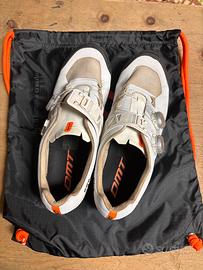 Vendo scarpe da mtb Dmt KM0, le scarpe sono state usate 5 mesi e mai piu utilizzate in seguito a una caduta, manca il boa superiore della scarpa sinistra, per sistemarle basta comprare il boa sostitutivo che costa sui 20€.