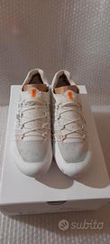 vendo Dmt25 pogi's bianco misura 43.5 in cm 28 completo di scatola, sacca porta scarpe, calza scarpe, lacci di ricambio arancioni, manuale e certificato e scontrino ancora 1 anno di garanzia disponibile le scarpe si presentano in ottime condizioni
