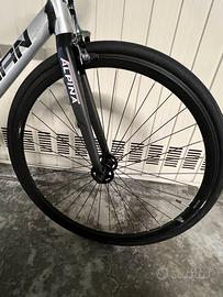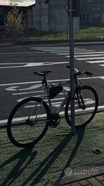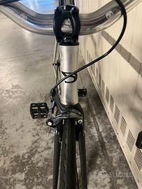 Come da titolo vendo bici a scatto fisso (fixie o fixed) dolan pre cursa, edizione limitata in alluminio spazzolato, per passaggio a bici gravel. La bici è stata comprata da un appassionato circa a febbraio 2025, io ci ho solo aggiunto dei pedali più ampi e gli straps per tenere fermi i piedi mentre si pedala o si fa skidding, è stata usata per qualche giro in città e ogni tanto per andare a lavoro, quindi non l'ho usata un gran chè, le gomme sono usate ma ancora buone. La bici monta una cassetta con doppia corona, c'è quindi la possibilità di utilizzare la bici in modalità scatto fisso o in signle speed. La bici monta: - manubrio blb cromato - forcella in carbonio Alpina - cerchi Gipiemme Pista Fixed - sella Giant Approach - pedali Reverse Super Shape 3D - straps Cinelli Kinks - guarnitura Prowheel Solid - freno anteriore Shimano Tiagra Con la bici cedo anche i pedali originali e la borsa da telaio; invece non vengono date le luci presenti nelle foto. La bici ha solo qualche lieve segno di usura come da normale utilizzo. La bici è un edizione limitata, destinata a mantenere il suo valore. Per qualsiasi dubbio, domanda o altre foto esplicative non esitate a contattarmi, chiedo serietà. Non spedisco, solo passaggio a mano. Il prezzo è LEGGERMENTE trattabile solo dopo visione di persona, valuto scambi, anche con conguaglio da parte mia, con bici gravel.