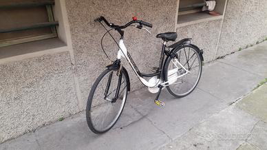 Elegante bicicletta donna raggio 26 in ottime condizioni, colore originale, con portapacchi, cavalletto, campanello, luce LED, sella imbottita, freni e gomme tutto ottimamente funzionante, pronta all'uso.