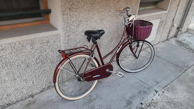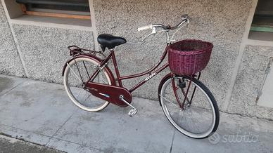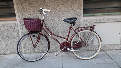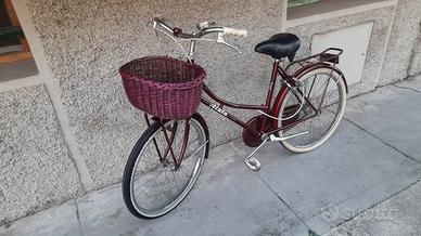 Elegante bicicletta donna raggio 24 ATALA in ottime condizioni, colore originale, con ampio cestino, doppio portapacchi, cavalletto, campanello, luce LED, sella imbottita, lucchetto blocca ruota posteriore, freni e gomme ottimi, pronta all'uso.
