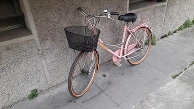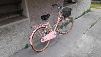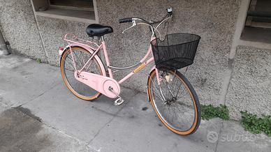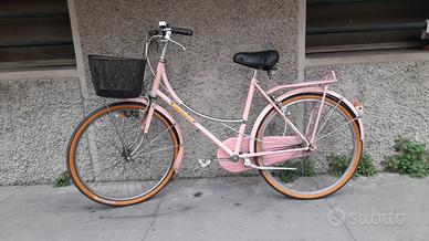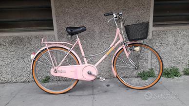 Elegante bicicletta donna raggio 24 con ampio cestino nuovo, doppio portapacchi, cavalletto, campanello, luce, sella imbottita, lucchetto blocca ruota posteriore e freni tutto ben funzionante, gomme come nuove, pronta all'uso. la bici è davvero in ordine, leggera e maneggevole da guidare, pedalata morbida, I segni del normale utilizzo, ma nulla di ché, ideale per città e passeggiate, si trova a castelmaggiore, facilmente raggiungibile in treno da Bologna e ritorno dove puoi caricare anche la bici.