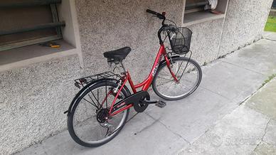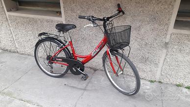 Elegante bicicletta donna raggio 24 MAXI in ottime condizioni, colore originale, cambio 6 rapporti ben funzionanti, con cestino, doppio portapacchi, cavalletto, campanello, luce LED ant e post, sella imbottita, freni e gomme ottimi, pronta all'uso.