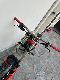 Vendo canyon sender CF interamente in carbonio, taglia L, ruote 27,5 in perfetto stato, sempre revisionata. Forcelle revisionate da poco; copertone anteriore e posteriore, olio e pastiglie dei freni e liquido degli pneumatici tubless cambiati da neanche un mese. La bici monta forcella fox 40 elite nell'anteriore e un fox float x2 nel posteriore, monta cerchi DT swiss FR2020, cambio sram GX DH a 7 velocità e manubrio renthal fatbar Bici pronta al uso, condizioni perfette!!