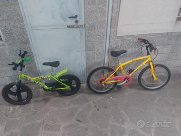 Le due bici sono per bambini, la bici con le decorazioni di Ben 10 è adatta a bambini dai 3 ai 5 anni, la seconda gialla invece fino ai 10/11 anni.