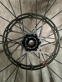 Bellissime ruote DT SWISS spline RC38TDB complete di: 1) pacco pignoni Sram 12 velocitá; 2) freni a disco; 3) due tubolari Voctoria corsa pro 28 mm nuovi