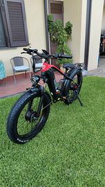 E-BIKE Duotts F26, con doppio motore (trazione integrale) ad alta efficienza da 48 V e 960 W, 130 Nm, cambio Shimano Tourney 1×7 velocità, sella ammortizzata, corona in alluminio e steli in acciaio. Pneumatici Kenda da 26×4,0 pollici. Freni a disco idraulici a doppio pistoncino ZOOM anteriori e posteriori, abilitato Bluetooth per l'app Duotts. Acquistata a settembre 2025, percorsi circa 500km. La batteria ha solo 6 ricariche complete. Vendo la bici perché per me risulta troppo alta, ho provato e riprovato ma essendo alto solo 1,67 non riesco ad appoggiare correttamente i piedi a terra, quindi preferisco orientarmi su un modello più basso per maggiore stabilità e sicurezza. La bici è davvero bella e in ottime condizioni, me ne privo veramente a malincuore. Solo consegna in presenza.