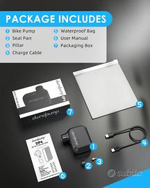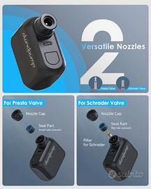 dwndpump Mini pompa per Bicicletta, Pompa per Bicicletta Portatile 100PSI, Pompa per Aria Elettrica per Bici da Corsa Portatile, con Valvole Presta e Schrader, Accessori Bici da Corsa