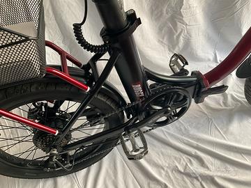 E-Bike 20” Urban in alluminio Buggy 6 V batteria integrata (36V/10,5Ah/378Wh) Motore al mozzo posteriore Torque: 42Nm Display Led Brera Codice prodotto 200200005 Colore Bordeaux Telaio in alluminio pighevole Dimensioni ruota 20” Pneumatici 20x3.00 Chilometri percorsi 35