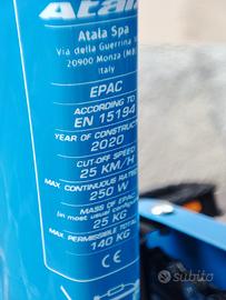 E-BIKE ATALA E-RUN 360 - EDIZIONE LIMITATA – NUOVA Vendo splendida e-bike da donna Atala E-RUN 360, in edizione limitata e numerata con livrea custom. Condizioni: pari al nuovo PREZZO € 600 Bicicletta in vendita per inutilizzo e per liberare spazio. CARATTERISTICHE PRINCIPALI •Telaio in alluminio 26” easy access, passaggio cavi interno •Motore elettrico integrato al mozzo posteriore •Cambio Shimano Tourney 6 velocità •Comandi RevoShift •Freni V-Brake •Cerchi in alluminio a doppia parete •Portapacchi posteriore (25 kg) + anteriore (5 kg) •Luci integrate (anteriore AXA + posteriore LED) •Attacco manubrio regolabile •Parafanghi PLUS: •Edizione speciale Barilla (rara e numerata) •Design unico •Nessun lavoro da fare: pronta all’uso •Ideale per città e ciclabili Manuali d'uso e libretti disponibili.
