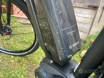 E-bike Cannondale Contro-E Speed con motore Bosch Performance Line Speed (45 km/h) e batteria Bosch PowerPack 500, capacità residua 97% da diagnosi ufficiale agosto 2025 (documento in foto). 4.097 km. Display Bosch Nyon a colori, luci, parafanghi, portapacchi, cavalletto, borsa telaio, lucchetto e caricabatteria originale. Ultimo tagliando agosto 2025 con controllo generale, pastiglie freno post nuove e aggiornamento software. Vendo per inutilizzo. Prezzo in linea col valore stimato dal meccanico (1.300–1.500 €), valuto offerte serie.