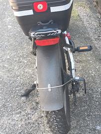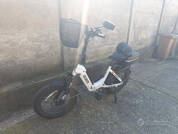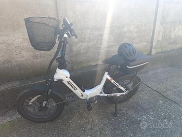 Ancora con 1 anno e mezzo di garanzia. pagata 1500€ con bauletto posteriore e cestino anteriore. Una e-bike potente, pieghevole e versatile, progettata per trasformare ogni spostamento in un viaggio indimenticabile. Potenza e autonomia senza compromessi Grazie almotore posteriore da 250We allabatteria da 48V 12Ah, questa bici elettrica ti regala tutta la spinta che cerchi, fino a35 kmdi autonomia e una velocità massima di25 km/h. Perfetta per affrontare la città o scoprire nuovi sentieri. Sicurezza e controllo totali Non temere ostacoli: ifreni a disco idraulici Tektro da 160mmassicurano una frenata potente e precisa in ogni situazione. Laforcella ammortizzata ZOOMda 55mm assorbe le asperità del terreno, regalandoti un comfort di guida superiore. Design compatto e stile senza tempo Iltelaio pieghevole in alluminio da 20″si adatta a ogni esigenza, con un look moderno ed elegante. I cerchi da20″x4.0 in lega nera a doppia paretecombinano resistenza e stile, mentre lasella SRnera garantisce comfort per tutto il giorno. Tecnologia al tuo servizio Tieni tutto sotto controllo con ildisplay LCD KD718: velocità, distanza e autonomia sempre a portata di mano. Le luci LED anteriori e posteriori integrate ti rendono visibile e sicuro in ogni condizione, mentre i cablaggi impermeabili assicurano affidabilità anche sotto la pioggia. Pronta a seguirti ovunque Con unpeso di soli 27 kge un telaio pieghevole, la CB 48V è facile da trasportare e da riporre. È la bici elettrica che si adatta a te, al tuo stile e alle tue avventure quotidiane Motore 250W – mozzo posteriore da 48V Velocità Massima 25 Km/h Batteria 48V 12Ah Autonomia 25-35 Km Cambio Shimano – Alivio 9 velocità Deragliatore Shimano – 9 velocità Display Modello: KD718 LCD 48V Cerchi 20 “x4.0 lega doppia parete nera Freni Anteriori/Posteriori Tektro Hydraulic Disco Ø160mm Telaio Telaio pieghevole da 20″ in alluminio Sella Sella Nera SR Forcella Forcella per sospensioni ZOOM Luce
