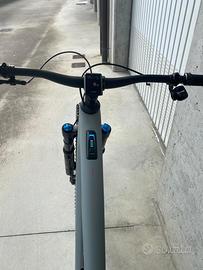Robusta e leggera, telaio in carbonio, per un totale di 18kg, batteria Bosch compact tube da 400wh, predisposta all’eventuale installzione del range extender.
