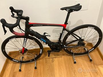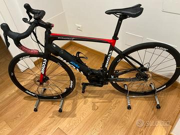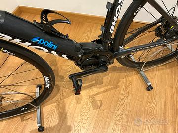 e-bike professionale Bhoss da corsa con motore Polini da 250w dual battery. Batteria principale evo con garanzia 20 mesi. Montata con gruppo Shimano dura ace 11 rapporti e freni idraulici Shimano. Sella Specialized 3D mis 54x55
