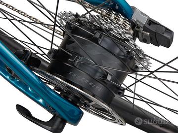 Motore: SyncDriveMove Plus Hub drive 30 Nm (75 Nm effective) Comando: Mode support switch from SRAM Blips Display: Giant RideControl GO, frame-integrated LED console Optional wireless ANT+ display Batteria: Giant EnergyPak 400Wh, Aluminium casing with highest safety standard (EN50604), CO2 Neutral production, Giant EnergyPak Plus 200 range extender compatible Caricatore: Giant EnergyPak 4A smart charger, 60% in 1:45 Connettività: Giant RideControl App enabled ANT+ wireless display signal with e-bike profile Colorazioni: Sea Sparkle / Black Telaio: Advanced-grade composite,12x145 thru-axle Forcella: Advanced SL-Grade Composite, Full-Composite OverDrive Aero Steerer, 12x100mm thru-axle, Disc Reggisella: Giant D-Fuse, Composite, 14mm offset Cambio: Sram Rival eTap AXS Deragliatore Anteriore: Sram Rival eTap AXS Deragliatore Posteriore: Sram Rival eTap AXS Freni: Sram Rival eTap HRD, Paceline 160mm center-lock [F] 160mm 6-bols [R] Comandi Freno: Sram Rival eTap AXS HRD Pacco Pignoni: Sram Rival XG-1250 10x36T 12-speed Catena: Sram Rival 12-speed Guarnitura: "Sram Force X-SYNC 33/46T BCD107 chain ring Praxis E crank Alloy ISIS" Movimento centrale: Giant E+ System BBSS Cerchi: Giant P-R2 Alloy Disc Wheel System, Tubeless Ready, 22mm inner width, 12mm thru-axle Raggi: Sapim spoke E-Light [R] Race [F], e-bike optimized Copertoni: Giant Gavia Fondo 0 700x32C 170TPI Tubeless Foldable Extra: Fender adapter Illuminazione: Seatpost clamp integrated tail light Peso: 13.7 Kg (M) Prezzo di listino € 6449 DISPONIBILE TAGLIA M