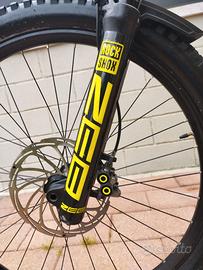 2.231 Km. totali, usata poco. Telaio in carbonio, taglia L (20”); anno di produzione 2022; Motore Bosch CX (85Nm) con protezione inferiore in alluminio; Batteria Powertube 625Wh; Display Kiox; Forcella Rockshox ZEB 170mm; Ammortizzatore Rockshox Super Deluxe Ultimate, escursione al posteriore 160mm; Cambio SRAM NX Eagle 12 Rapporti; Freni MAGURA doppio pistone; ben equipaggiata per utilizzo Enduro-All Mountain. Forcelle e ammortizzatore revisionati da poco, disco freno anteriore nuovo, pneumatici 80% Buone condizioni generali, qualche graffietto, segno di normale usura.