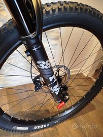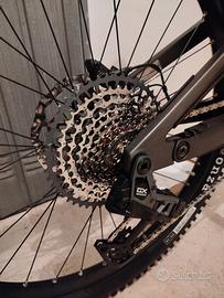 flyer uproc telaio in carbonio configurazione mullet 27.5 dietro 29 avanti motore Panasonic 95 nm d copia 5 modalità di assistenza configurabile da smartphone GPS integrato blocco e sblocco per l' sicurezza display full led cambio elettronico SRAM GX axs 12v pignone SRAM Eagle t-type 11-52 batteria integrata da 750 estraibile possibile programmare carica lenta per far durare meglio la batteria forcella Fox 38 escursione 180 ammortizzatore centrale Fox 150 escursione freni idraulici Shimano 4 pistoncini dischi flottanti maggiorati da 203 copertoni onza porcospino tubllss pedali carbon km totali 400 bicicletta perfetta nuova un capo lavoro della ingegneria Svizzera in garanzia senza difetti assolutamente x altre foto e chiarimenti contattatemi io sono disponibile per prova anche senza impegno prezzo trattabile dopo visione