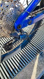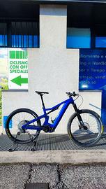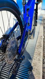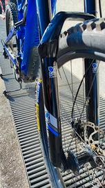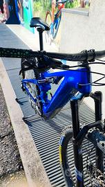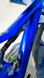 Telaio in carbonio con motore Panasonic 95Nm (POTENZA RECORD), batteria da 630wh, Formato Mullet (29" anteriore e 27,5" posteriore) con Forcella X-Fusion Trace 36 RC air spring da 150mm (150mm anche al posteriore). TAGLIA M. Trasmissione Shimano Deore 11 velocità/Freni a disco idraulici sempre Shimano Deore.