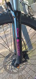 e-bike motore yamaha, cambio shimano a 9 velocità, batteria da 4oowh, sellino telescopico, forca suntour da 34, km 2300, ruote tubles da 27,5. Eventuale scambio con mtb tg s biamortizata.