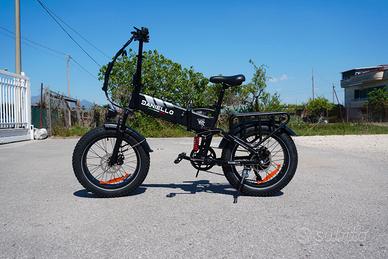 Telaio Materiale: Alluminio 6061 Pieghevole, leggero e resistente Motore Tipo: Brushless 500W Posizione: Posteriore Coppia: 80+ Nm (motore ad alta coppia) Velocità massima: 25 km/h Modalità di guida 5 livelli di assistenza PAS (Pedal Assist System) Batteria Litio 48V – 14Ah Capacità totale: 672Wh Rimovibile, ricaricabile Autonomia: fino a 120 km in modalità PAS Display Display LCD a colori YL-81Fcon USB Illuminazione LED anteriore LED posteriore con luce freno Catarifrangenti sulle ruote Forcella Modello: ED Titanio Con sospensione e sistema lockout Cambio SHIMANO 7 velocità Freni Freni a disco meccanici da 180 mm Anteriore e posteriore Sella Comfort in PU Larga, realizzata con tecnologia sottovuoto per maggiore comfort Ruote 20" x 4.0", Peso Circa 30 kg