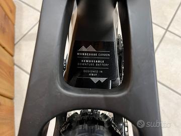 E-bike Italiana full CARBON (triangolo anteriore e carro posteriore) con escursione da 180mm anteriore posteriore.