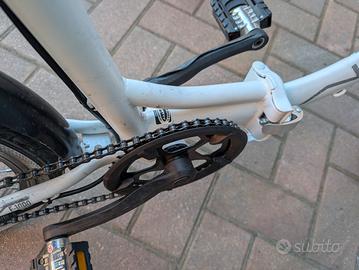 Vendo, come nuova, e-bike pieghevole a pedalata assistita. Allego nelle foto la scheda tecnica. Batteria nuova maggiorata. Ideale per i centri urbani. Vendo per passaggio a Mountain bike.