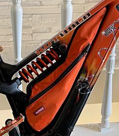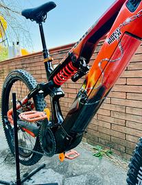 Splendida e-bike da enduro, marca Rotwild Tedesca modello RX750 dell’Ottobre 2021, perfettamente funzionante. Taglia M, Mullet (29/27,5”) per altezze da 1.68 a 1.80. E-MTB Top di Gamma, ottima anche per all-mountain, escursioni generose, geometrie azzeccate, maneggevole su tornantini stretti e tratti ripidi. Motore Brose S-Mag da 90Nm (legale a 25kmh e 250W rating power) silenziosissimo e configurabile tramite app, capiente batteria da 750 Wh per dislivelli importanti sfiorando 3000 d+. Telaio full carbon areografato a mano da Artista a tema Ghost Rider (trattasi di unico pezzo). Montaggio degno di nota con componenti NUOVI quali: freni Shimano e pastiglie, coppia dischi da 203mm, cerchi e ruote complete Wag, gomme Schwalbe Magic Mary e Nobby Nic, manopole Phantom e sella AiYing Cycling Confort. Gli altri componenti usati, perf. funzionanti e revisionati sospensioni di tutto rispetto: forca Rockshok Yari da 160 mm con Slik Graphics in tinta (Upgradabile con Zeb o Fox da 38mm), ammo RS Super Deluxe a Molla, telescopico RS Reverb Stealth 150mm. Ruote nastrate, latticizzate e Toublessizzate. La bici ha percorso solo 2553km, in ottimo stato di conservazione, presenta pochi classici segni di usura di chi va per sentieri: in particolare segni e scalfitture dovuti a pietrate e sfregamenti nelle parti basse del carro posteriore. Sempre shelterata e protetta, non presenta crepe, rotture o danni strutturali. Immacolati steli e telescopico. Accessori omaggio, Molla secondaria, forcellino originale e borsa ALPKIT da telaio. Modello del valore al nuovo da fattura di 7000€ (senza gli upgrade) PREZZO: 4500€, QUALSIASI PROVA E CONSEGNA IN ZONA ALBISOLA/SAVONA, PAGAMENTO CONTANTI o BONIFICO. SPEDIZIONE DA CONCORDARE A CARICO ACQUIRENTE.