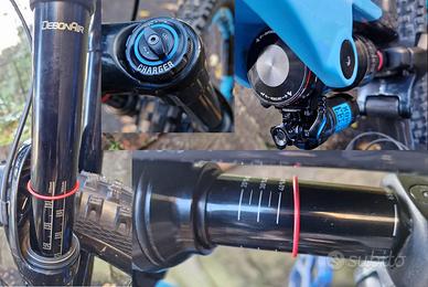 Gli altri componenti usati, perf. funzionanti e revisionati sospensioni top gamma: forca RS Lyrik Ultimate Charger 2.1 Debonair 170mm, ammo RS Super Deluxe Air Ultimate upgrade MegNeg, telescopico RS Reverb Stealth 150mm, cerchi carbon Nextie Premium XM leggeri e rigidi con grafiche a richiamo. Ruote nastrate, latticizzate con inserti antiforatura PTN Rokkline.