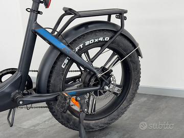 Disponibile in 3 colorazioni: blu, arancio e bianco. Sono le biciclette elettriche perfette per la città e per le strade più dissestate grazie alle sue gomme maggiorate. Comode da trasportare, pieghevoli e divertenti. Cerchi in lega, batteria integrata, ruote larghe. AUTONOMIA: 80Km* *L’autonomia dichiarata si basa su test effettuati senza sosta da persona di 70 Kg su percorso piano utilizzando la più bassa modalità di assistenza fornita SCHEDA TECNICA Autonomia: 80* km Motore: 48V Brushless 250W 45N/m RE Post. High Speed integrato alla ruota Batteria: Litio Polimeri 48V 528Wh Estraibile integrata al telaio Diametro Ruote: 20″(20 x 4) 📍 Dove trovarci: Bonoldi Srl – Concessionaria auto dal 1966 - Sportequipe, ICH-X, Peugeot, Spoticar, Robeta camper van 📍 Via Ghedi, 53 – Montichiari (BS) 📞 Tel: 🌐 Sito: www.bonoldisrl.it 📱 Seguici su Facebook, Instagram, YouTube e TikTok 📌 Nonostante la cura nella pubblicazione, potrebbero esserci errori. Ti invitiamo a verificare con noi tutti i dettagli del veicolo.