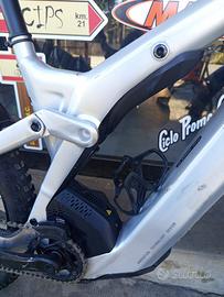 Mono FOX float EVOL eride 160 mm, twinloc, shimano XT, Deore 12 velocità, Bosch CX con aggiornamento, powertube 750 Wh/smart system, freni a disco shimano a 4 pistoncini, reggi sella telescopico FOX, parti SYNCROS.