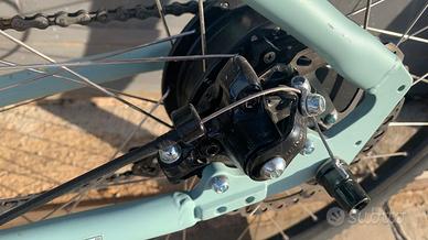 E-Bike come da foto , Riversade e- 100 colore verde acqua , tutta originale e come nuova utilizzata pochi mesi circa 700 km, cambio shimano sul manubrio , batteria con autonomia 70 km e chiusura con chiave(2) , rimovibile, motore sulla ruota con sensore di cadenza 24 magneti , coppia max 42 Nw . Ruota 28 pollici, copertoni x viaggiare su strade e sentieri, con camera d'aria autoriparanti . Capatibilità con porta pacchi posteriore, seggiolino, cistino .Freni a disco meccanici . usata pochi mesi per acquisto bici diversa , ha percorso circa 700 km anno luglio 2023 (luglio 2024 nuova bici). Costi spedizione da aggiungere . si prega di contattare solo se seriamente interessati. pagamento con bonifico tracciato 50% all'ordine e 50% a spedizione .