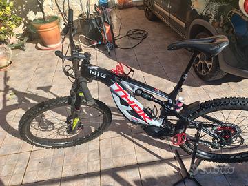 E-bike Thok Mig taglia L del 2023. Motore EP8, batteria 630w sostituita in garanzia a gennaio 2025, montata mullet 29'/27,5', cambio Sram 12v con cassetta 10/51, freni Magura trail, km 3850. € 1700 Predisposizione cablata per extender.