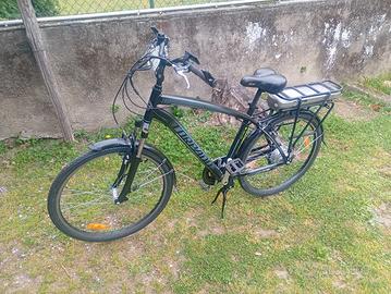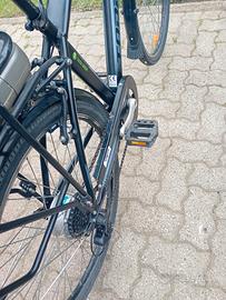 Vendo e-bike Torpado Zeus Gent T250, city e-bike da uomo tutta revisionata con freni nuovi. Batteria in ottime condizioni. Di seguito le specifiche principali: Motore: Posteriore da 36V / 250W (Bafang). Batteria al litio da 468 Wh (36V / 13Ah), di tipo removibile alloggiata nel portapacchi posteriore con autonomia da 40 a 80 km in base al livello di assistenza utilizzato. Display: LCD con 3 livelli di assistenza e funzione Walking Assistance (fino a 6 km/h senza pedalare). Tempo di ricarica: Circa 6-8 ore per una carica completa. Velocità massima: 25 km/h Telaio in alluminio 6061 Hydroforming molto leggero. Ruote: 26 pollici. Cambio: Shimano a 6 velocità TY300. Freni: Sistema V-Brake in alluminio. Forcella: Ammortizzata. Visibile ad Ivrea (TO) e-bike, ebike, pedalata assistita, bici elettrica, bicicletta elettrica