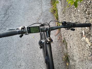MTB elettrica made in Italy (adatta anche per strade urbane) Denver Orus e3600, 27,5", telaio in alluminio, anno 2023, in buone condizioni (solo piccoli graffi). Cambio Shimano Altus m310 24 velocità, ammortizzatori Suntour xct hlo, canotto sella ammortizzato, freni a doppio disco, gomme seminuove, motore brushless 250 watt, batteria 480 watt celle Samsung. Trento città, pagamento solo contanti, no spedizione.