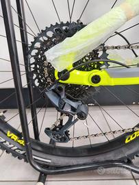 VR46 PRO TAGLIA L L’e-bike enduro bi-ammortizzata VR46 E-MTB Pro è assemblata con componenti di alta gamma e offre fluidità di pedalata, oltre a un elevato controllo in discesa e in curva. Sistema di controllo Bosch, sospensioni RockShox, cambio SRAM GX Eagle Lunar a 12 rapporti, e set-up "mullet" con pneumatici Pirelli Scorpion. Il telaio con Flip-Chip e l’app eBike Flow di Bosch ti permettono di personalizzare la tua esperienza di guida. Sistema Motore Bosch Performance: Spinta dal potente motore Bosch Performance Line CX (85 Nm di coppia), alimentato dalla batteria integrata Bosch PowerTube 750Wh, per lunghe sessioni di riding e supporto costante. Geometria Adattabile (Flipchip): Il sistema flipchip ti permette di regolare rapidamente la geometria del telaio, ottimizzando la bici per qualsiasi condizione di terreno e superando ogni ostacolo con facilità. Sospensioni Premium Rock Shox: Affronta i percorsi più duri con la forcella Rock Shox Lyrik Ultimate RC2 29” (160 mm di escursione) e l'ammortizzatore a molla Rock Shox Super Deluxe Coil Ultimate, per un controllo ineguagliabile. Setup Ruote Mullet: Combinazione vincente tra ruota anteriore da 29" e posteriore da 27,5" (entrambe Fulcrum e-Metal 500 custom VR46) per un mix perfetto di stabilità e agilità. Componenti Top di Gamma: Trasmissione meccanica Sram GX Eagle 12v e reggisella telescopico Crankbrothers Highline 7 per un'esperienza di guida professionale. Forcella : Rock Shox Lyrik Ultimate RC2 29” Ammortizzatore : Rock Shox SUPER DELUXE Coil Ultimate Ruota anteriore : Fulcrum e-Metal 500 27.5" custom VR46 Ruota posteriore : Fulcrum e-Metal 500 29" custom VR46 Cambio : Sram GX Eagle 12v Catena : Sram GX Eagle 120 maglie Reggisella : Crankbrothers HIGHLINE 7 170 mm x 31,6 mm Manubrio : FSA Gradient Riser 25 Disco freno anteriore DISCHI 200 MM Sram Centerline Disco freno posteriore DISCHI 180 MM Sram Centerline Motore Bosch Performance Line CX Display Kiox 300 Batteria Bosch PowerTube Batteria integrata da 750