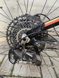 Serie sterzo: FSA No.57B tapered 1"1/2 - Guarnitura: FSA, 34T, Megatooth - Cambio: Sram SX Eagle - Comandi: Sram SX Eagle Single Click Trigger, 12s - Freni: Shimano BR-MT420, Four piston, Rotor SM-RT30 203 mm/203 mm - Pacco pignoni: Sram PG1210 Eagle 12s, 11/50