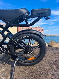 V20 Pro Fatbike 2026 – Fatbike Elettrica 250W | 100% Legale su Strada La V20 Pro Fatbike elettrica 2026 combina potenza, stile e affidabilità. Perfetta per la città e per il tempo libero, offre una guida comoda e sicura con motore da 250W completamente conforme alle normative stradali. 🚲 Prestazioni e Libertà Motore posteriore 250W potente e silenzioso Velocità massima 25 km/h (legale su strada) Acceleratore fino a 6 km/h per partenze facili Nessuna patente o assicurazione necessaria Ideale per città, piste ciclabili e percorsi naturali ⚙️ Specifiche Principali dal 1299€ ora per 999€ Batteria: 48V 15Ah rimovibile Autonomia: fino a 80 km Cambio: Shimano 7 velocità Freni: disco idraulici anteriori e posteriori Ricarica: circa 6 ore Carico massimo: 150 kg Pneumatici: Kenda 20×4.0 fatbike Telaio: acciaio rinforzato 🛡️ Sicurezza e Comfort Doppia sospensione per una guida fluida Sistema di luci LED completo (anabbaglianti, abbaglianti, stop e frecce) Elementi riflettenti per massima visibilità Frenata potente e sicura 📊 Display Smart Il display LED multifunzione mostra: velocità livello batteria assistenza alla pedalata (1–5) chilometri percorsi Con porta USB integrata per ricaricare lo smartphone. ⚡🚲 ✅ Pronta all’uso, affidabile e perfetta per ogni giorno.