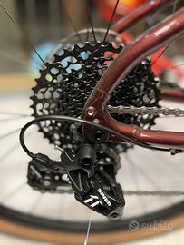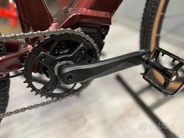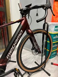 E-bike gravel della megamo mod Kansas. Con motore centrale 200w e 65nm, batteria da 504wh da 36v. Gruppo sram 1x11 apex Listino 2999
