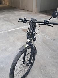 Cannondale "Tesoro" anno 2022-2023, taglia M, colore blu met., km 7.599. Motore Bosch "Performance line" (batteria 625 Wh, 65 Nm). Cambio Shimano "Deore" 11 velocità, freni a disco idraulici Shimano. Luci cablate (anteriore e posteriore), parafanghi e portapacchi.