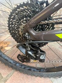 Cambio shimano 8 velocità dedicato, ammortizzatore centrale e frontale fox.